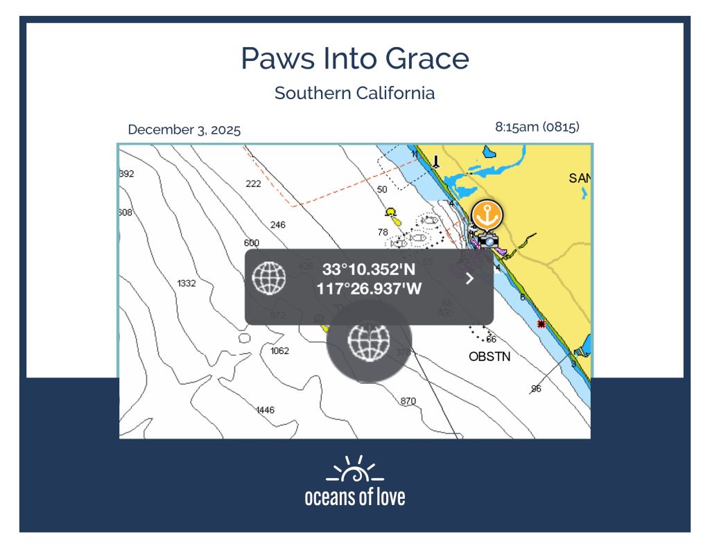 Paws into Grace pets were most recently laid to rest on the 3rd day of December 2025, off the Southern California Coastline.