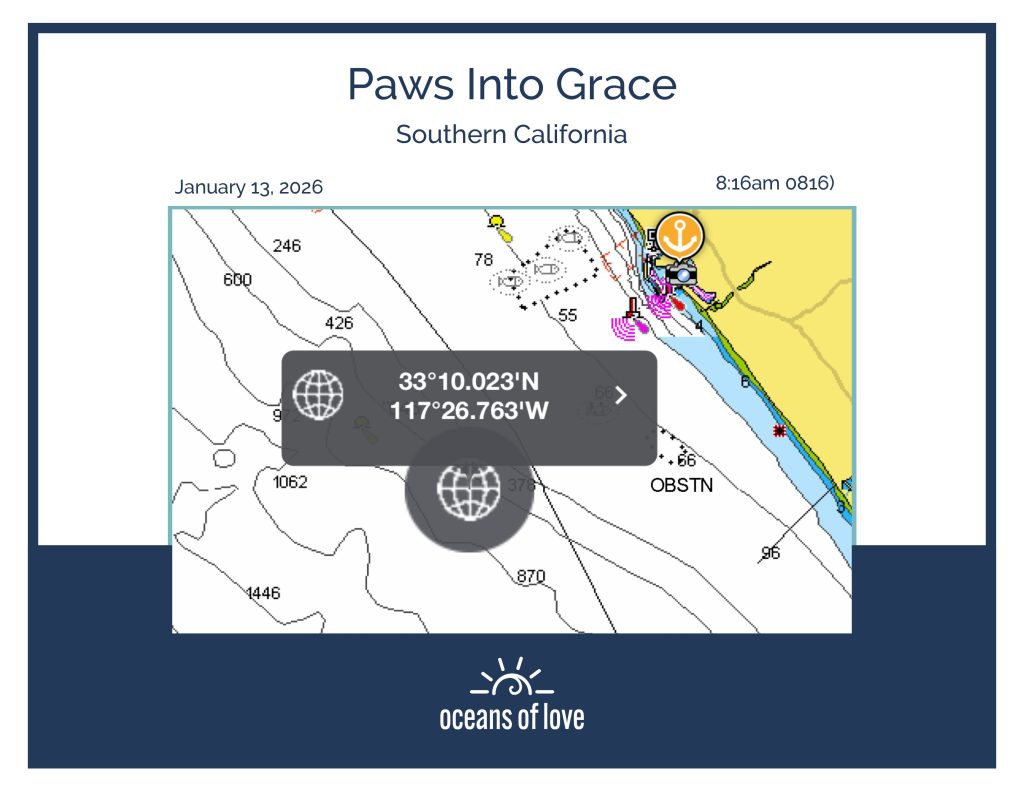 Paws into Grace pets were most recently laid to rest on the 13th day of January 2026, off the Southern California Coastline.