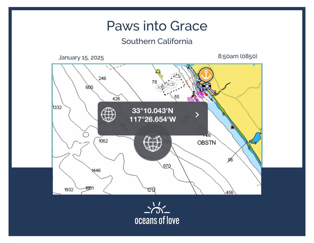 Paws into Grace pets were most recently laid to rest on the 15th day of January 2025, off the Southern California Coastline.