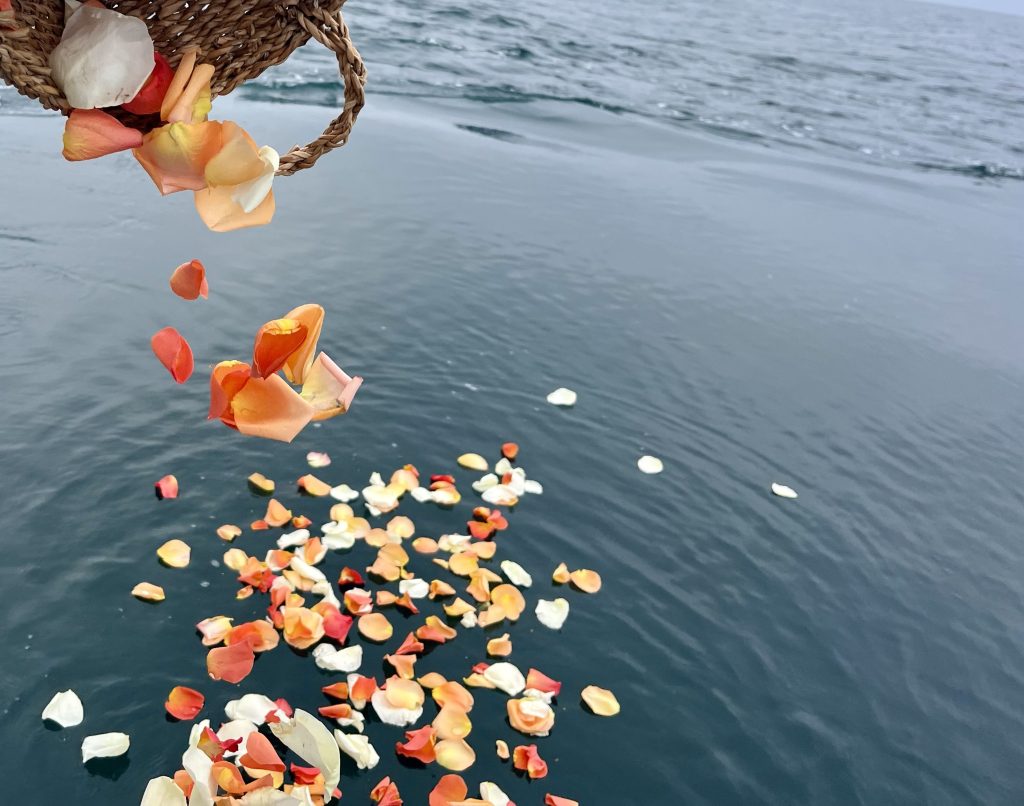 When you choose communal cremation with Paws into Grace, your pets cremated remains are gently and respectfully spread at sea with help from our partner Oceans of Love. Oceans of Love lays fresh flowers and rings their captain’s bell to honor these beloved pets at their final resting place.
