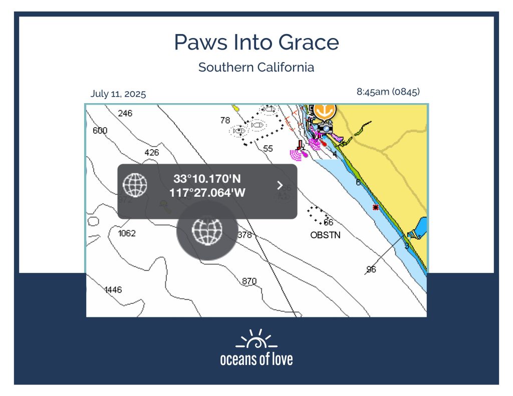 Paws into Grace pets were most recently laid to rest on the 11th day of July 2025, off the Southern California Coastline.