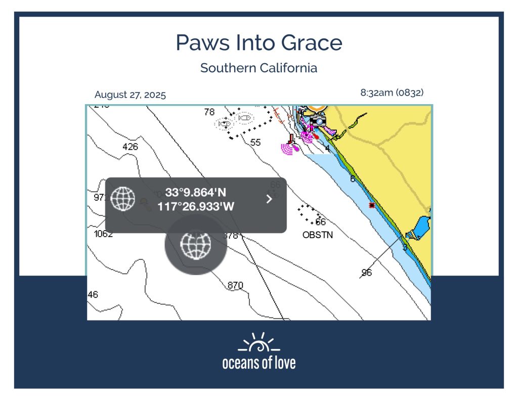 Paws into Grace pets were most recently laid to rest on the 27th day of August 2025, off the Southern California Coastline.