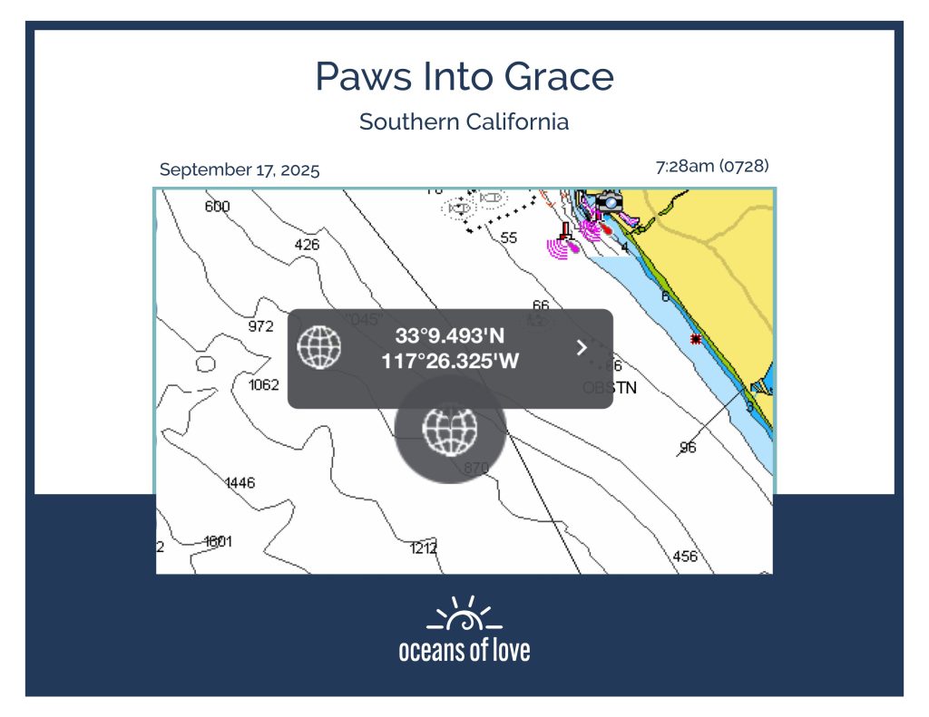 Paws into Grace pets were most recently laid to rest on the 17th day of September 2025, off the Southern California Coastline.