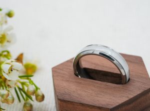 This titanium ring is available in sizes 4-15. This band is lightweight and durable. Channel will be swirled with your pet’s ashes and a color of your choice: Solid colors, Opal colors or Sparkle colors.