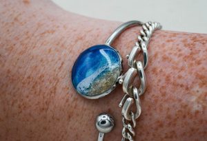 This beautiful pendant is original work of art—truly one of a kind. Each piece is handcrafted with your pet’s ashes carefully incorporated into sand, then finished with a calming ocean tide design. The artwork is sealed with a layer of crystal-clear, jeweler-grade resin, ensuring a lasting and unique tribute every time. While the overall design is inspired by the pieces shown, each one is completely unique. Choose from a 1″ circle pendant, a 0.6″ circle pendant, or rectangle pendant. Chain not included.