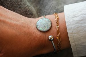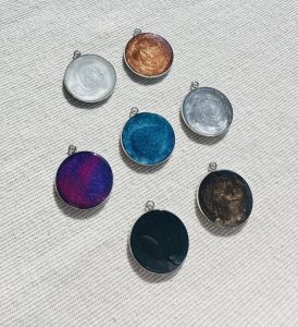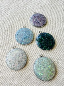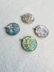 This sterling silver pendant is small and dainty (0.6″ in diameter). Swirled with your pet’s ashes and available in the following color options: Solid/Multi colors, Opal colors or Sparkle colors. Chain not included.